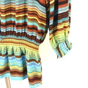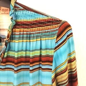 Art and Soul Bohemian Tunic Top Size Large Aqual Teal Brown Boho Striped Flowy Earthy