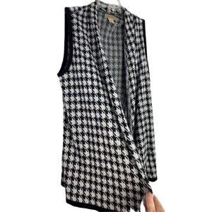 Art and Soul Womens Sleeveless Open Cardigan Sweater Black White Herringbone XL