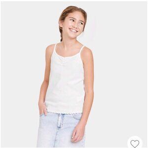 Bring a touch of extra style to their basic top collection with this Cinch Front Tank Top from art class?. This tank top in a solid color makes a go-to pick to match any outfit. Fashioned in a slim fit, it features a V-neck with a cinched front detail and a lettuce hem for sweet flair. The soft and stretchy cotton-blend fabric ensures comfortable movement, while the pullover style allows for easy wear. They can pair this sleeveless top with a range of bottoms ? from jeans to shorts to skirts and more ? for a variety of looks.