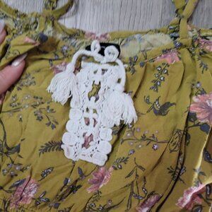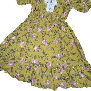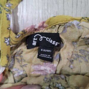 Art class Yellow green Floral Dress With Lace Detail & Ruffled Sleeves kids sz 6