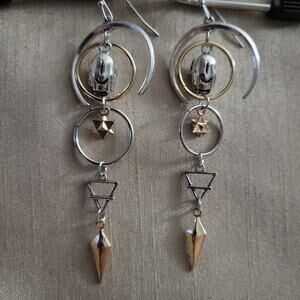 Art deco boho ecclectic geometric shape dangle earrings with animal skulls