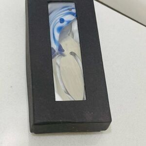 Art glass blue clear dolphin Bookmark New in Box 3.5" tall by 1.5" wide dolphin
