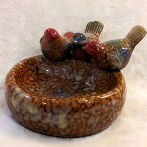 Art glazed bird dish bird feeder trinket tray indoor or outdoor home decor