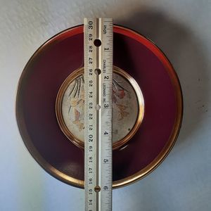 Art of Chokin metal engraved plate. Maroon and floral. 6". It needs some cleaning and TLC. Fair condition. Made in Japan.