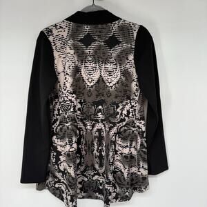 Art of Cloth Cardigan Women XS Black Tan Abstract Waterfall Lapel Open Front USA