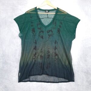 Art of Cloth Top Womens XS Green Black Ombre Mesh Short Sleeve Relaxed Shirt