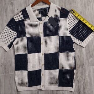 Art of Rhebbric Checkered Knit Short Sleeve Cardigan size S brand new