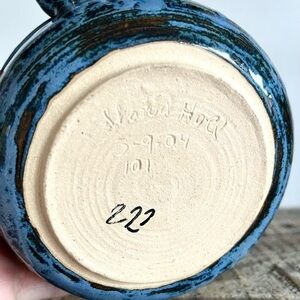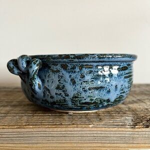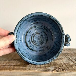 Beautiful piece of art pottery hand thrown. Blue bowl or sugar bowl. There are no chips or cracks. This piece is in very nice condition. Blue swirl stripe.