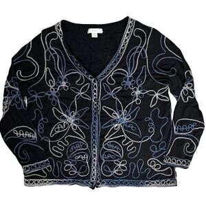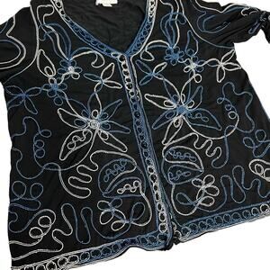 Art to Wear Embroidered Blue Black White Lightweight Jacket Size 1X cj Banks, light wear