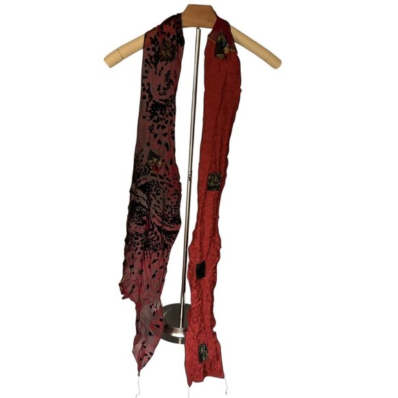 Art to Wear red burgundy Devore Burbout Velvet applique silk scarf