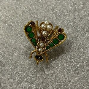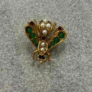 Art vintage bee brooch pearls glow intricate design collectible unique jewelry