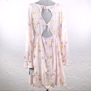 NWT Cottage Core Art Class Pastel Pink Floral Long Sleeve Dress-with cut Out Back detailing