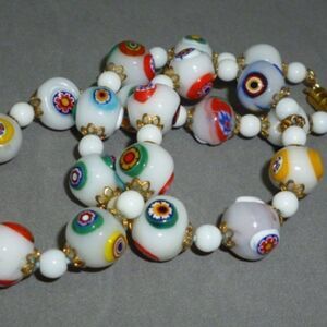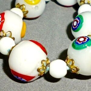 ArtDeco Venetian glass white Millefiori Necklace