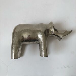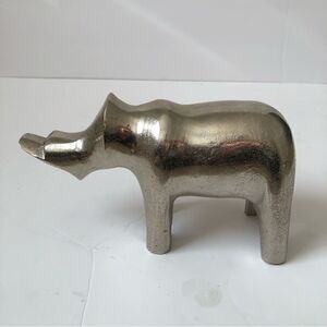 Art Deco cast aluminum silver plated rhinoceros statue