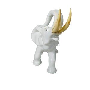 ArtMark White Elephant Figurine VTG Ceramic Upturned Trunk MCM Boho Animal Decor