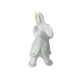 ArtMark Vintage White Elephant Figurine – White Ceramic Elephant with Upturned Trunk – Mid Century Animal Decor 50s Boho Made in Portugal