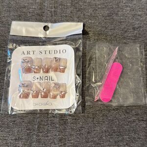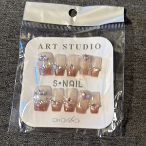 New, Elegant press-on nails with a nude and glitter design. Perfect for a chic look.