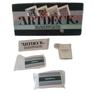 Vintage ArtDeck The Game of Modern Masters Impressionism Surrealism Artists 1984. Condition is Pre-owned and vintage 1984. ALL PIECES ACCOUNTED FOR.  The outer box has some overall wear.  For 2-4 players ages 12 and up. Very hard to find