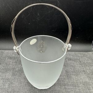 Arte Murano Silvestri Ice Bucket Frosted Glass Metal Rose Pattern Italy Vintage