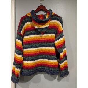 Arte Pacha Womens Wool Blend Rainbow Striped Full-Zip Hooded Sweater Knit Sz M/L. Please note there is no size tag. From my research, I believe this to fit a size M/L, but please see measurements for fit.