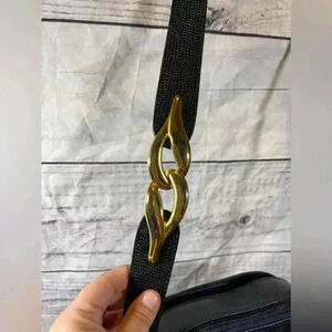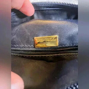 This Arte Veneta crossbody handbag is a true work of art. Crafted in Italy, it features a beautiful dark navy leather exterior with gold hardware accents. The bag has a zip closure and a small size, making it perfect for everyday use. The handle/strap is made of both leather and metal, ensuring durability and comfort.