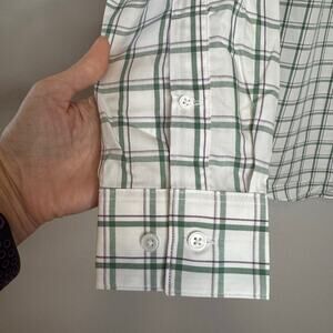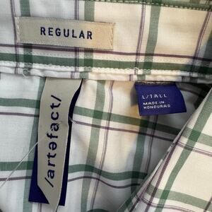 Artefact Button Up Shirt White Green Plaid Cotton NWT Men Size Large Tall