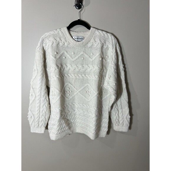 Artelana Vintage Cream Alpaca Handknit Sweater Cabin UNISEX Size Mens Womens L