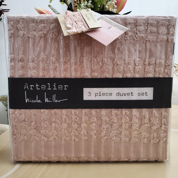 Artelier Nicole Miller Pink Elevated Cotton Texture 3 Piece Duvet Set