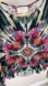A stunning, eye-catching print of a kaleidoscope of florals atop camo print, front and back.