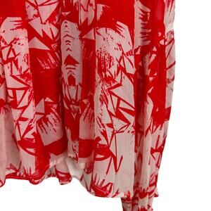 Artelier Nicole Miller Red & White Patterned Pleated Blouse. Excellent condition, lightweight very thin material. Button elastic sleeves. Boxy flowy fit. Round neckline. R16