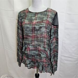Artelier Nicole Miller Red and Green Silk Ruffle Blouse Size Small