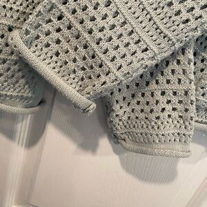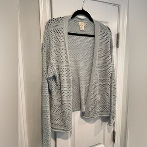 Artelier Nicole Miller Size S Light Blue Open Front Mesh Knit Pocket Cardigan