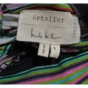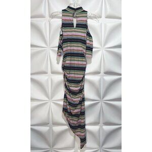 Artelier Nicole Miller Sz S Striped Mock Neck Cold Shoulder Asymmetrical Dress