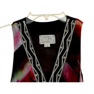 Artelier Nicole Miller Watercolor Print Empire Maxi Dress Sz 4 Deep V-Neck