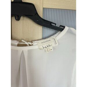 Artelier Nicole Miller White Silk Sz M Blouse Elegant Career Cocktail Open Back