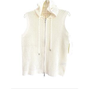 Artelier by Nicole Miller sleeveless hooded Full Zip Ivory color sweater Size M.