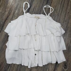 Artemis White Gauze Ruffle Crop Top Size Small Adjustable Straps Button Front