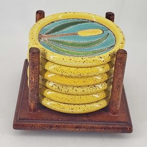 Artesa Mid Century Modern MCM style Hand Painted Glazed Ceramic Coaster Set Of 6