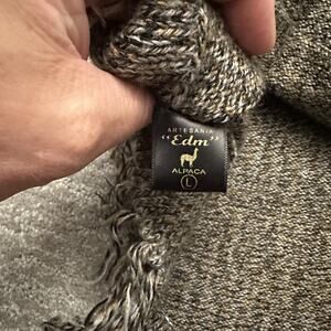 Artesania Edn Sweater Womens Large Brown Gray Hooded Alpaca Knit Fringe Llama