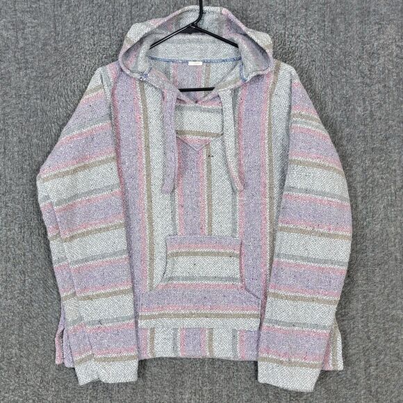 Artesanias Hoodie Womens Large Gray Pink Hooded Sweater Surfer Skater Drug Rug.