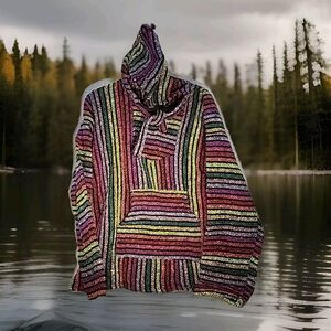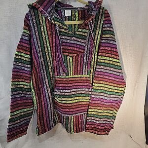 Artesanias Hoodie Unisex Large Bright Colorful Stripes Boho Hippie Aztec Neon. These are the brightest colors I could find! New without tags. New. No tags. Never Worn. Underarm and sleeve length are in photos. Back length is 27". I can ship right away.