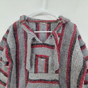 Artesanias Women's Long Sleeve Hooded Drug Rug Multi Color Striped Size S Surf