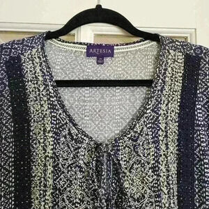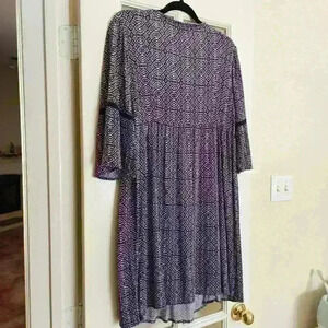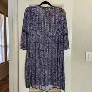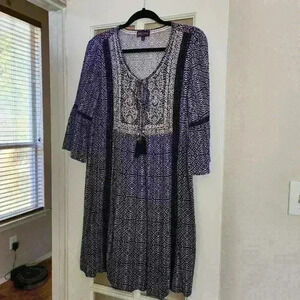 Artesia Knee Length Boho Hippie Relaxed Bell Sleeve Tie Front Tunic Dress Medium