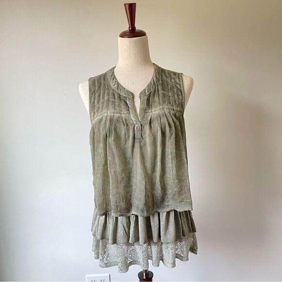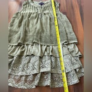 Artesia sage green sleeveless layered Boho top with lace Size small