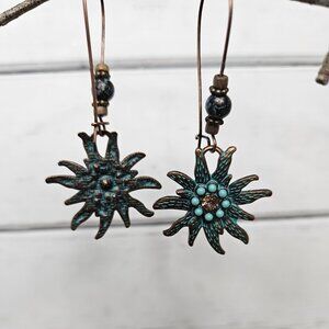 Artesian Antiqued Brass Flower Dangle Earrings
