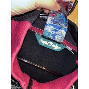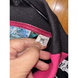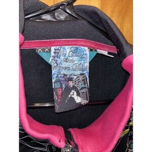 Artful dodger men full zip jacket size 4X pit to pit 25 length 32 multicolor embroidered black pink graphic prints pockets polyester mock stand up collar st Giles and the seven dials