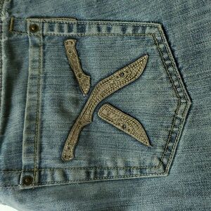 Artful Dodger jeans with pocket knives embroidered back pockets.