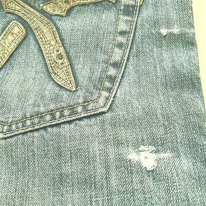 Artful Dodger Knifes Embroidery Light Wash Distressed Jeans Size 34