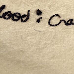 Good condition. No holes. Some very faint dye staining? on front and tiny spot on back. Color is a butter yellow (slightly more saturated than camera could capture.)