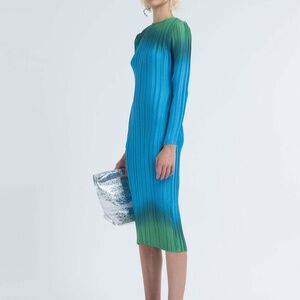 ARTHUR APPAREL Box Pleat Crew Neck Midi in Green Blue Orb.